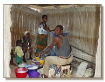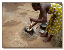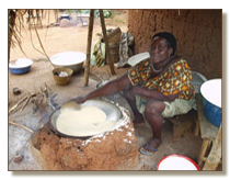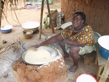 Frau beim Rösten von Maniokmehl (Gari)