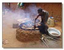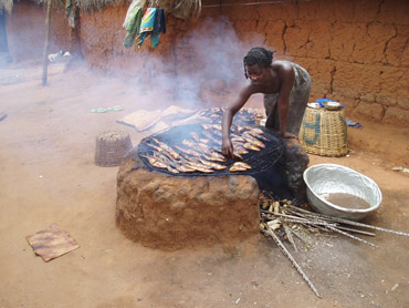 Beim Räuchern von Trockenfischen für den Markt