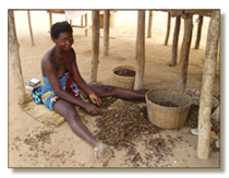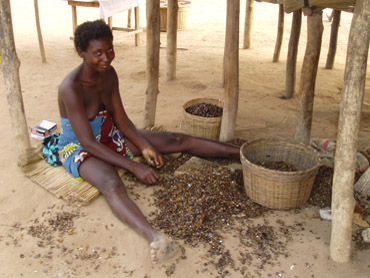 Frau beim Auslesen von Palmnüssen