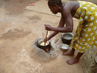 Zubereitung des traditionellen Hauptgerichts Akume (Maissterz)