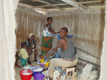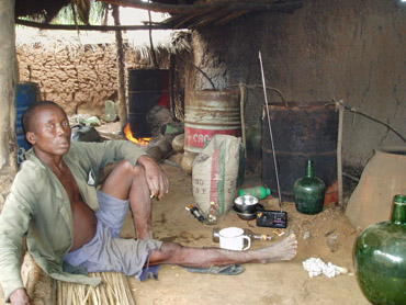Beim Brennen von Palmschnaps (Sodabi)