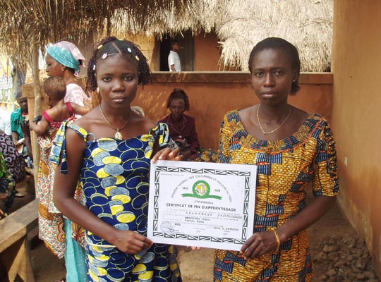mit ihrer Lehrmeisterin Hélène Mondenou bei der Diplom-Überreichung