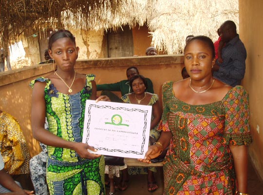 mit ihrer Lehrmeisterin Viviane Mondji bei der Überreichung des Diploms
