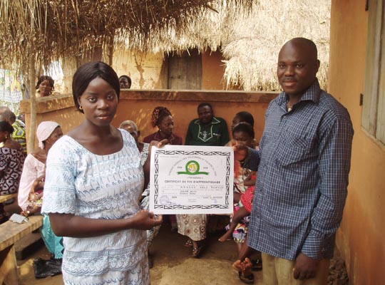mit ihrem Lehrmeister Martin Aglebe bei der Überreichung des Diploms