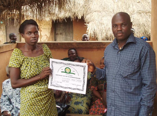 mit ihrem Lehrmeister Martin Aglebe bei der Überreichung des Diploms